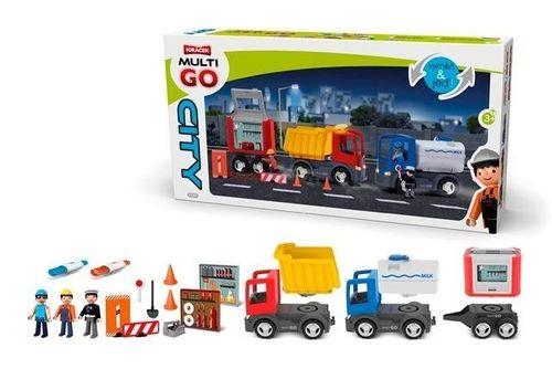 MultiGO to linia samochodów ciężarowych z poręcznym systemem bayonet, który umożliwia małym dzieciom wymianę rozszerzeń i innych akcesoriów. Bazą zabawek MultiGO stanowi nadwozie auta, z wymiennymi rozszerzaniami. Połączenie między nadwoziem a roszerzeniem jest stabilne i bezpieczne. Śmieciarka może na chwilę zmienić się w cysternę lub wywrotkę. Istnieje również możliwość podłączenia kilku przyczep z różnymi roszerzeniami.