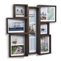 Multiramka na zdjęcia Edge została wykonana z wysokiej jakości drewna jesionu i wykończona w kolorze orzechu. Ramka charakteryzuje się formą, pasującą do różnego rodzaju pomieszczeń i aranżacji wnętrz. Posiada zachwycająco prosty, ale nowoczesny design, dzięki asymetrycznym drewnianym ramom. Multiramkę można zawiesić na ścianie w pionie, jak i w poziomie.
