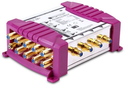 Multiswitch Opticum OMS 9/4P z 8 wejściami SAT dla konwerterów Quattro + 1 wejście z anteny TV naziemnej, rozdziela sygnał z satelity na 4 dowolne tunery z sygnałem DiSEqC.