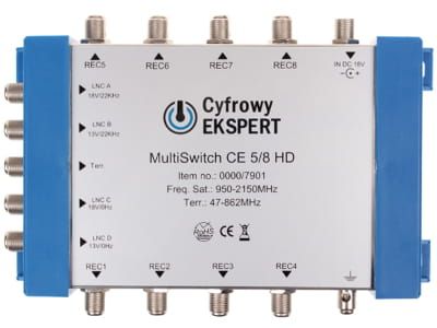 MutliSwitch CE 5/8 HD to nowoczesny system podziału sygnału marki Cyfrowy Ekspert. System ten umożliwia, w prosty i szybki sposób, rozdzielenie sygnału satelitarnego z 1 pozycji SAT (4 polaryzacje) na 8 niezależnych użytkowników. MultiSwitch CE 5/8 HD posiada zestaw praktycznych uchwytów wykonanych z wysokiej jakościtworzywa sztucznego. Dzięki czemu MultiSwitch CE 5/8 HD, nadaje się idealnie do użytku wewnątrz budynków.