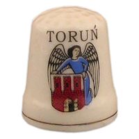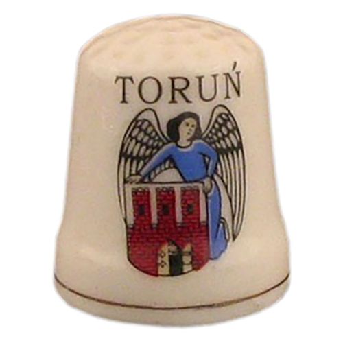 Naparstek ceramiczny z nadrukowanym herbem miasta Toruń.