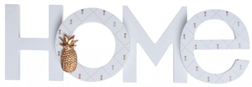 Drewniany napis HOME. Napis z ananasem pięknie wypełni miejsce w salonie na komodzie. Ten napis będzie się pięknie komponował z ramką oraz szkatułką z bardzo podobnej kolekcji.