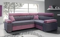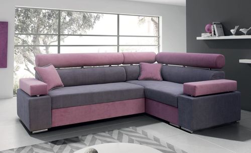 Narożnik posiada powierzchnię spania oraz bardzo duży i pojemny pojemnik na pościel. Posiada on ruchome poduszki. Nietypowe kolory są atutem tego narożnika.