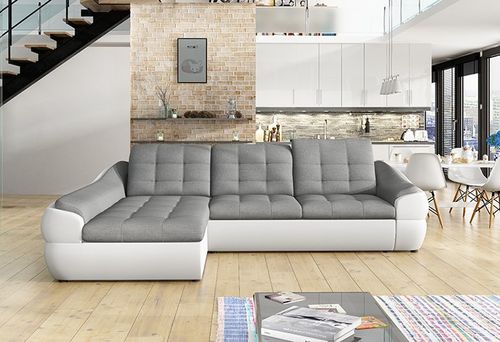 Narożnik zawiera pojemnik na pościel.