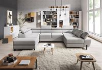 Narożnik zawiera pojemnik na pościel.