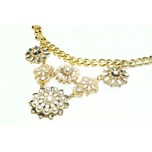 NASZYJNIK PEARLYNASZYJNIK PEARLYCharakterystyczny naszyjnik w formie kolii z kamieni. Bardzo efektowny, wykonany z antyalergicznych materiałów z dbałością o najmniejsze detale.Świetnie pasuje do eleganckich, jak również do codziennych stylizacji. Założony do białego T-shirtu ożywi Twój strój. Naszyjnik prezentuje się rewelacyjnie! Wykonany jest ze stopów metali nieszlachetnych.Nie są odporne na wodę.Nie zawiera niklu ani chromu.Wymiary:długość całkowita 50 cm (z regulacją)regulacja 9 cmdługość elementu ozdobnego 10 cm (w najdłuższym miejscu)