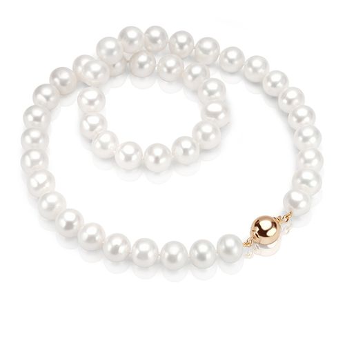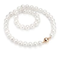 Staviori Naszyjnik 45cm. Naturalne Perły hodowlane słodkowodne. Białe Jakość A Żółte Złoto 0,585. Średnica 10-11 mm.