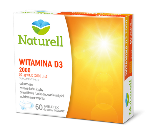Witamina D jest to grupa rozpuszczalnych w tłuszczach organicznych związków chemicznych. Wyróżniamy dwie podstawowe formy witaminy D, które różnią się budową: ergokalcyferol (witamina D2) oraz cholekalcyferol (D3). W organizmie człowieka zaliczane są do witamin, jednak pełnią one funkcje hormonów. Witamina D zawarta w suplemencie diety Naturell Witamina D3 2000 wspiera prawidłowe funkcjonowanie układu odpornościowego, przyczynia się do utrzymania zdrowych kości i zębów, wspomaga prawidłowe funkcjonowanie mięśni, wspiera prawidłowe wchłanianie wapnia.