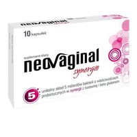 Suplement diety NeoVaginal Synergio zawiera połączenie 5 miliardów bakterii o właściwościach probiotycznych w synergii z żurawiną i beta-glukanem.