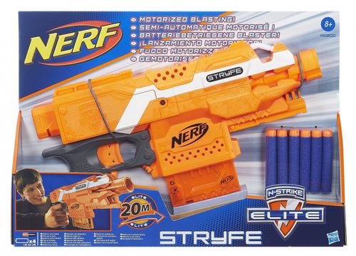 Szybka i zwinna, półautomatyczna wyrzutnia strzela sześcioma strzałkami bez przeładowywania! Dzięki specjalnej szynie możesz dołączać do niej dodatkowe elementy z innych wyrzutni N-Strike. Wyrzutnie Nerf Elite mają zasięg do 20 m.