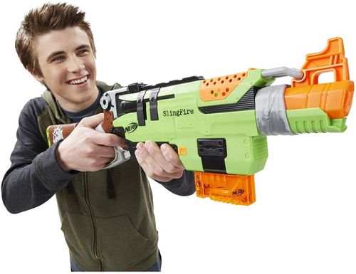 Do szybkich i celnych działań wybierz wyrzutnię Zombie Strike Slingfire. Ta wyrzutnia wystrzeliwuje 6 strzałek Zombie pod rząd na odległość aż 20 metrów. Dzięki poręcznej i wygodnej budowie poślesz wszystkie pociski w kierunku swoich przeciwników, w mgnieniu oka! To nic innego jak szybka zabawa!