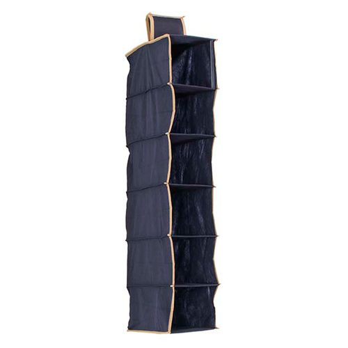 Składany Organizer z sześcioma półkami. Wykonany z „oddychającej” TKANINY, przepuszczającej powietrze i łatwej do czyszczenia. Krawędzie dodatkowo wzmocnione taśmą, zabezpieczającą przed uszkodzeniem. Można zawiesić go na drążku w szafie i tym samym w prosty sposób zyskać dodatkowe półki. Jest ciekawym rozwiązaniem, które sprawi, że w szafie zmieścimy jeszcze więcej rzeczy. Tak przemyślany sposób przechowywania sprawi, że nasze ubrania nie będą się gniotły i dłużej pozostaną jak nowe. Składany organizer świetnie sprawdza się zarówno w domu jaki na wyjeździe. Można w nim przechowywać odzież, buty lub czapki. Szczególnie polecany młodzieży mieszkającej w akademiku lub dzielącej szafę z rodzeństwem.