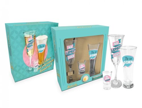Niezbędnik Kobiety. Zestaw Niezbędnik Kobiety to idealny pomysł na upominek. Komplet ten składa się z szklanki do piwa, kieliszka oraz naczynia do szampana.Numer oferty: 40753209