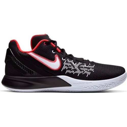 Męskie buty do koszykówki Nike Kyrie Flytrap to druga odsłona modelu do koszykówki sygnowanego nazwiskiem Kyrie'go Irvinga. Cholewka wykonana z materiału syntetycznego gwarantuje lekkość oraz dopasowanie. Za amortyzacje odpowiada podeszwa środkowa wykonana z pianki Phylon. Model w kolorystyce czarnej z biało-czerwonymi elementami.