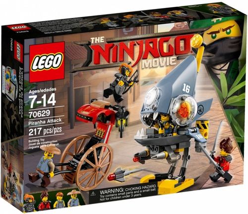 Odegraj ekscytujący pościg Mecha Piranii za rikszą przez Miasto NINJAGO® w zestawie LEGO® NINJAGO MOVIE™ Atak Piranii. Mech Pirania ma otwierane szczęki z kokpitem dla minifigurki w środku oraz dwa wystrzeliwane pociski. Ten ciekawy zestaw zawiera też cztery minifigurki z bronią, które pomogą rozegrać scenę pościgu.