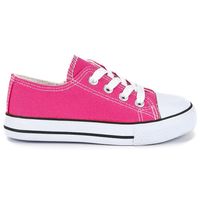 Różowe trampki dla dziewczynki z niską, sięgającą pod kostki cholewką. Buty na każdą porę roku, jesienią i zimą sprawdzą się doskonale, jako obuwie zmienne do szkoły i przedszkola. Mają białą, gumową podeszwę z bieżnikiem. Trampki wiązane na sznurówki z ułatwiającym zakładanie i ściąganie suwakiem umieszczonym z boku.