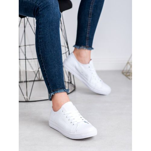 Sport Trampki Damskie Białe Tekstylne