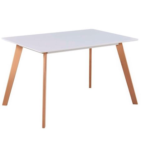 Stół o wyjątkowej prostej, minimalistycznej formie, która nadaje mu lekkości i elegancji. Blat wykonany z płyty MDF lakierowanej na kolor biały mat. Nogi bukowe. NORDIC jest wspaniałym stołem który nie tylko fantastycznie się prezentuje ale jest również bardzo trwały.