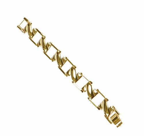 Nowoczesna bransoletka urozmaici każdą stylizację Długość 21 cm, szerokość 2 cm. Warstwa złota naniesiona w metodzie - PVD- napylanie próżniowe jonami tytanu, czy też azotkiem tytanu jest nowoczesną metodą nanoszenia powłok o bardzo dużej trwałości. * Pokryte jest w całości 4 - 8 mikronową warstwą 14K, 18K i 24K złota. * Warstwa złocenia pokryta jest lakierem jubilerskim, który zabezpiecza powłokę złota przed ścieraniem i nadaje wspaniały połysk * Biżuteria wykonana ze stali szlachetnej-należy do grupy stali o strukturze austenitycznej ( podobna chirurgiczna 316 L) : - jest hipoalergiczna i nie uczula, ponieważ nie emituje związków niklu do organizmu - nie koroduje, nie odbarwia się i długo cieszy swoim blaskiem - ścieralność uzależniona od noszenia i od pH ciała - nie wymaga specjalnej konserwacji jak biżuteria ze srebra, czy złota Ze względu na różne ustawienia monitorów oraz różną jakość wyświetlaczy zastosowanych w urządzeniach mobilnych, kolory przedstawione na zdjęciach mogą nieznacznie różnić się od rzeczywistych. Dokładamy wszelkich starań, aby na stronie Sklepu przedstawiać tylko realne zdjęcia produktów, jak najbardziej zbliżone do rzeczywistości.