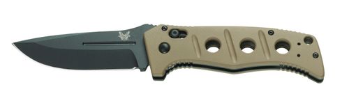 Rękojeść noża to połączenie okładzin wykonanych z materiału G10 i stalowych przekładek, które wzmacniają i stabilizują konstrukcję noża. Odpowiednie podcięcia oraz profilowanie rękojeści zapewniają wygodę podczas operowania nożem w najbardziej wymagających warunkach. Otwarta konstrukcja modelu 2750BK Adamas pozwala na jego łatwe utrzymanie w czystości. Nóż wyposażony jest w klips ułatwiający jego przenoszenie, a dodatkowo do modelu firma Benchmade dokłada pochewkę wykonaną z cordury.