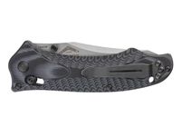 Rękojeść o ergonomicznych kształtach składająca sie z czarnych okładzin wykonanych z kompozytu G10 została wyposażona w liczne nacięcia poprawiające pewność chwytu. W rękojeści znajdziemy także tuleje, która służy do zamontowania i przeciągnięcia linki. W komplecie stalowy, przekładalny klips ułatwiający przenoszenie noża.