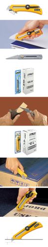 Specjalny nóż do otwierania zbiorczych kartonów. Kształt noża pozwala na precyzyjne ustalenie głębokości cięcia tak aby nie uszkodzić zawartości kartonu. Niewielki, stalowy zaczep przeznaczony jest do usuwania zszywek stosowanych do zamykania opakowań. Nóż wyposażony jest także w stalową wysuwaną prowadnicę. Przy jej wykorzystaniu można dokładnie wyciąć jedną ścianę kartonu bez ryzyka uszkodzenia zawartości opakowania. Położenie ostrza blokowane jest sprawdzoną, skuteczną blokadą ze śrubą, a korpus noża wykonany jest z trwałego tworzywa sztucznego (ABS). Idealne narzędzie do prac magazynowych