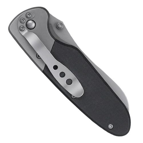 Stalowy klips umożliwia zaczepienie noża na oporządzeniu, krawędzi kieszeni lub pasku.