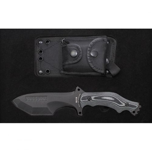 Nóż wykonany przez niemiecką firmę MFH. Ostrze wykonane ze stali 420 Wykonana z mikarty rękojeść. Nylonowa pochwa. Zestaw zawiera kamień do ostrzenia oraz krzesiwo.