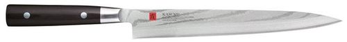 Każdy nóż ze stali damasceńskiej firmy KASUMI jest niepowtarzalnym arcydziełem tradycyjnej sztuki rękodzielniczej. Wyposażony w bardzo wygodną rękojeść z twardego drewna pakka, fenomenalnie ostry jest wyjątkowym narzędziem, które możemy używać w naszej kuchni.