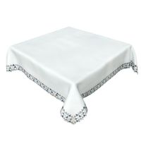 Obrus wykonany jest z poliestru, pokrytego warstwą teflonu dzięki temu nie przyjmuje plam i łatwo się prasuje. Obrus ma nadrukowany wzór. Doskonale sprawdza się w codziennym użytkowaniu. Obrus nie wymaga mocnego prasowania i nie ulega kurczeniu.