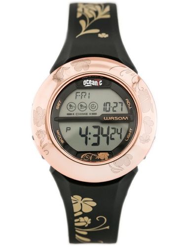 Kolorystyka: tarcza w kolorze czarnym, koperta w kolorach czarnym-rosegold, pasek w kolorze czarnym, pierścień w kolorze rosegold