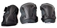 Ten komplet to bezpieczeństwo i wygoda. Zapewnia ochronę nadgarstków, ��okci i kolan. Kompozytowe płyty wykonane z bardzo twardego i lekkiego tworzywa. Profilowane tak, aby możliwie najlepiej ochraniać nadgarstki, łokcie i kolana, a także zapewnić wygodę i pełną swobodę ruchów. Wierzchnia część ochraniaczy na nadgarstki jest usztywniona elastyczną wkładką i wyłożona miękką frotką. Dla ochraniaczy na kolana i łokcie - opaska mocująca to bardzo elastyczny materiał, który nie krępuje ruchów, a jednocześnie utrzymuje ochraniacz w miejscu. Rzepy umożliwiają stabilne ustawienie ochraniacza, nawet gdy (ze względu na grube odzienie) musimy zrezygnować z opaski materiałowej. Całość jest wykonana z materiałów bardzo przepuszczalnych, co ułatwia skórze oddychanie, poprawia komfort i przyjemność czerpaną ze sportu. Ciemna kolorystyka kompletu. Rozmiary: M - na mężczyznę o szczupłej budowie ciała - około 65-75 kg. L - na mężczyznę o przeciętnej budowie ciała - około 76-89 kg. XL - na mężczyznę o postawnej budowie ciała - około 90+ kg.