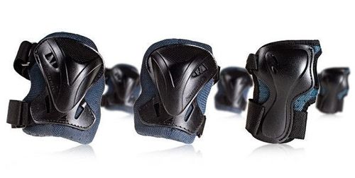 Ten komplet to bezpieczeństwo i wygoda. Zapewnia ochronę nadgarstków, łokci i kolan. Kompozytowe płyty wykonane z bardzo twardego i lekkiego tworzywa. Profilowane tak, aby możliwie najlepiej ochraniać nadgarstki, łokcie i kolana, a także zapewnić wygodę i pełną swobodę ruchów. Wierzchnia część ochraniaczy na nadgarstki jest usztywniona elastyczną wkładką i wyłożona miękką frotką. Dla ochraniaczy na kolana i łokcie - opaska mocująca to bardzo elastyczny materiał, który nie krępuje ruchów, a jednocześnie utrzymuje ochraniacz w miejscu. Rzepy umożliwiają stabilne ustawienie ochraniacza, nawet gdy (ze względu na grube odzienie) musimy zrezygnować z opaski materiałowej. Całość jest wykonana z materiałów bardzo przepuszczalnych, co ułatwia skórze oddychanie, poprawia komfort i przyjemność czerpaną ze sportu. Ciemna kolorystyka komletu. Komplet w rozmarach XXS i XS - przeznaczony dla młodych sportowców.