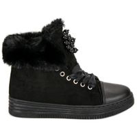 Czarne ocieplane trampki to wyróżniająca się propozycja na sezon jesienno - zimowy. Buty, ozdobione futerkiem na cholewce oraz koralikami dodadzą najzwyklejszej stylizacji niebanalnego charakteru. Idealne do codziennego użytku - dzięki wykonaniu z ekologicznego zamszu oraz ociepleniu futerkiem zapewnią stopom niebywały komfort.
