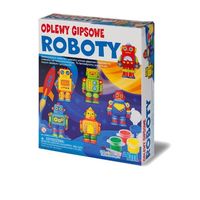 Formuj i maluj gipsowe magnesy na lodówkę lub broszki w kształcie zabawnych robotów.