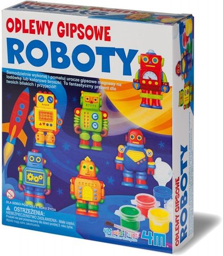Dzięki niemu samodzielnie wykonasz odlewy gipsowe robotów, a za pomocą dołączonych do zestawu farbek pomalujesz je!