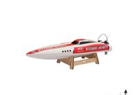 Ślizgacz z laminatowym kadłubem o długości 550 mm, zainstalowanym silnikiem trójfazowym, regulatorem oraz serwem sterowania. Dwułopatowa śruba napędowa, duralowy ster, stabilizatory ze stali nierdzewnej. Gotowe ubarwienie, łódź jest kompletnie złożona, stojak znajduje się w zestawie. Zestaw nie zawiera nadajnika ani odbiornika.