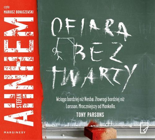 W szkolnej pracowni stolarskiej zostają znalezione zwłoki brutalnie zamordowanego nauczyciela. Obok ciała leży stare zdjęcie klasowe z przekreśloną głową zabitego.Fabian Risk po wielu latach pracy w sztokholmskiej policji wraz z rodziną przenosi się do rodzinnego Helsingborga. Ledwo wprowadza się do nowego domu, a już zostaje wezwany na miejsce zbrodni. Zabity nauczyciel to jego dawny kolega z klasy. Staje się jasne, że zabójca postępuje zgodnie z drobiazgowym planem. Na liście ma więcej osób. Kto będzie następny?Fabian wpada w skomplikowane śledztwo, które budzi w nim wspomnienia z czasów szkolnych, pełne obrazów brutalnego znęcania się nad jednym z uczniów. Nie ma powodów do dumy. Wkrótce sprawy przybierają tak nieoczekiwany obrót, że nikt nie potrafi odgadnąć, co tak naprawdę się dzieje.Ofiarą bez twarzy doświadczony scenarzysta Stefan Ahnhem wynosi szwedzki kryminał na wyższy poziom. Inteligentnie łączy thriller psychologiczny z opowieścią o seryjnym zabójcy w iście amerykańskim stylu oraz tradycyjnym kryminałem.Tony Parsons powiedział o niej: Wciąga bardziej niż Nesb. Złowrogi bardziej niż Larsson. Mroczniejszy od Mankella. Dynamiczny skandynawski kryminał, w którym wszystko jest na swoim miejscu.Książka ukaże się w 12 krajach, sprzedano także prawa do ekranizacji.To mroczna opowieść. Zaskakująca, trzymająca w napięciu, rozgrywająca się w cieniu zdarzeń z przeszłości. Przeczytałem ją jednym tchem.ke EdwardsonOstrzeżenie: opisany w tej książce pościg za seryjnym zabójcą, utrzymany w duchu Milczenia owiec, może powodować poważne problemu z zaśnięciem.Mons KallentoftStefan Ahnhem od ponad dwudziestu lat pracuje jako scenarzysta telewizyjny i filmowy. Jest autorem scenariuszy do najpopularniejszych szwedzkich seriali kryminalnych, m.in. tych o Kurcie Wallanderze. Ofiara bez twarzy to jego debiut. W przygotowaniu kolejny tom zmagać Fabiana Riska ze zbrodnią Dziewiąty grób