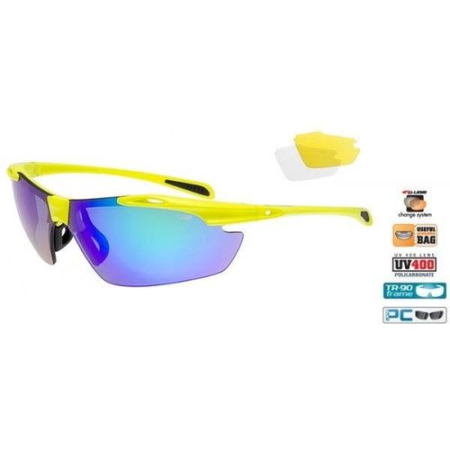 Goggle E721-4 okulary sportowe z wymiennymi szybkamiWysokiej klasy okulary sportowe wraz z wymiennymi szkłami na każdą pogodę. Niezbędne podczas treningu rowerowego lub biegowego. Zapewniają ochronę oczu przed szkodliwym promieniowaniem UV oraz różnego rodzaju drobnymi elementami, które mogłyby podrażnić siatkówkę. Technologie:PC – POLYCARBONATE Poliwęglan nadaje okularom lekkość i odporność na działania mechaniczne. Soczewki wykonane z poliwęglanu charakteryzują się wysoką twardością i odpornością na zarysowania. Soczewki z włókna węglowego nie powodują zniekształceń i zaburzeń widzenia.TR-90 – GRILAMID Grilamid, z którego wykonana jest oprawka charakteryzuje się zwiększoną elastycznością w stosunku do poliwęglanu, przy jednoczesnym zachowaniu bardzo wysokich parametrów twardości.FOG BLOCK G-LENS Powłoka na wewnętrznej stronie soczewki o właściwościach minimalizujących zaparowanie szkieł podczas wzmożonego wysiłku. Uwaga! Aby zachować wysokie właściwości powłoki należy chronić ją przed zarysowaniem oraz wszelkimi uszkodzeniami mechanicznymi, a w szczególności nie należy czyścić okularów niewłaściwymi materiałami.LENS CHANGE G-SYSTEM Praktyczny system umożliwiający wymianę soczewek, by dopasować okulary do aktualnych warunków atmosferycznych. GOGGLE wyposażone w ten system posiadają w zestawie przynajmniej jedną dodatkową soczewkę.Filtr UV 400