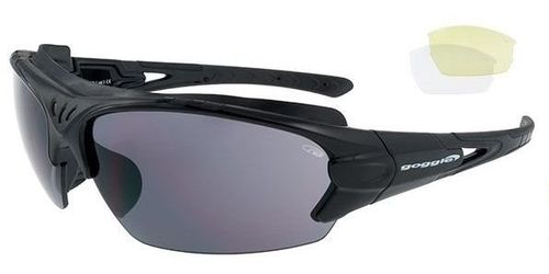 Sportowe okulary przeciwsłoneczne Goggle z systemem wymiany szyb. Doskonale sprawdzą się podczas biegania, jazdy na rowerze, rolkach i w uprawianiu innych aktywności na świeżym powietrzu. Para wymiennych szyb pozwala na łatwe i szybkie dostosowane okularów do warunków pogodowych.