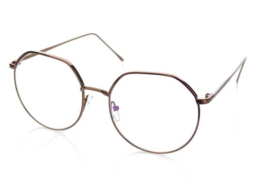 Eleganckie damskie okulary zerówki w metalowej oprawce. Cienkie zauszniki zdobione grawerem.
