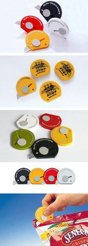 Nożyk cieszy się dużą popularnością również z tego powodu, iż na odwrotnej stronie ma stosunkowo dużą, płaską powierzchnię, która świetnie nadaje się na reklamowe nadruki.