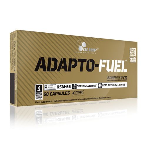 Suplement diety Olimp Adapto-Fuel to preparat, którego skład opiera się na bogatym udziale substancji określanych mianem adaptogennych, wspierających zdrowie organizmu, jak i sam organizm. Doskonały w cyklu intensywnych treningów, jak również w sytuacjach stresowych, suplement Olimp Adapto-Fuel pozwala przystosować się organizmowi do niekorzystnych warunków środowiskowych, jak stres czy duży wysiłek, oraz wzmacnia jego odporność. Co więcej, stała suplementacja preparatem Olimp Adapto-Fuel, dzięki zawartości aż czterech roślin adaptogennych (ashwagandha KSM-66, bakopa drobnolistna, żeń-szeń syberyjski, różeniec górski), zwiększa zakres sił witalnych organizmu, ułatwia przystosowanie się do warunków stresowych oraz wpływa korzystnie na funkcje poznawcze. Dodatkowo, preparat podnosi zakres zdolności umysłowych, poprawiając pamięć i koncentrację, oraz zmniejsza uczucie senności i zmęczenia, i podnosi odporność na stres. Produkt Olimp Adapto-Fuel jest polecany osobom znajdującym się pod działaniem stresu, ciężko pracującym fizycznie lub umysłowo, a także uczącym się i przed ważnymi wystąpieniami. Suplement dostępny w formie kapsułek.