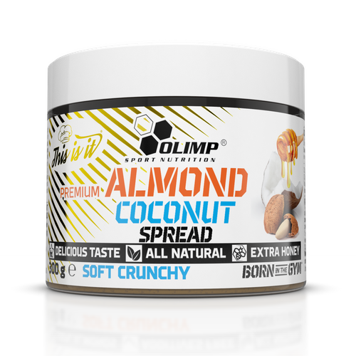 …sięgnij po krem Almond Coconut Spread soft crunchy od Olimp Sport Nutrition! Jest to wyjątkowa kompozycja migdałowo-kokosowa wytworzona z wysokiej jakości zmielonych migdałów i wiórków kokosowych z dodatkiem naturalnego miodu. Produkt w 100% naturalny, bez dodatku soli czy oleju palmowego.