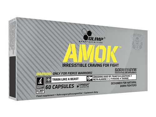 | Zalecane dawkowanie | Dla wagi poniżej 70 kg: 1 kapsułka Olimp Amok na 30 min. przed wysiłkiem fizycznym. Powyżej 70 kg 2 kapsułki 30 min. przed planowanym wysiłkiem lub inaczej po konsultacji z dietetykiem sportowym. Nie należy przekraczać zalecanej dziennej porcji do spożycia w ciągu dnia. Suplement diety nie może być stosowany, jako substytut zróżnicowanej diety. Zalecany jest zrównoważony sposób żywienia i zdrowy tryb życia. |