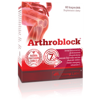 Olimp Arthroblock to preparat opracowany z myślą o stawach. Kompleksowa formuła łączy w sobie wpływającą stymulująco na produkcję kolagenu witaminę C, wchodzący w skład mazi stawowej kwas hialuronowy, zwiększający ruchliwość stawów ekstrakt z korzenia imbiru, i wiele, wiele więcej w pełni naturalnych składników, zapewniających ochronę naszych stawów. Suplementacja Olimp Arthroblock pozwoli na skuteczną walkę z siejącymi spustoszenie wolnymi rodnikami, ujędrni skórę, a także zadba o odbudowę i regenerację naszego aparatu ruchu. Produkt jest szczególnie polecany osobom aktywnym fizycznie, które regularnie wystawiają swoje stawy na pracę z dużym obciążeniem, prowadzącym do ich eksploatacji.