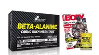 Beta-alanine Carno Rush Mega Tabs® to suplement diety kierowany do osób uprawiających sporty wytrzymałościowo-siłowe, siłowe i wytrzymałościowe, w których wymagana jest wysoka wydolność fizyczna utrzymywana przez dłuższy okres czasu i/lub z dużą częstotliwością treningową. Beta-alanine Carno Rush Mega Tabs® przyczynia się do wydłużenia czasu do osiągnięcia zmęczenia dzięki czemu faktyczna objętość treningowa może być znacznie większa.