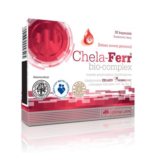 Uwaga: Do produkcji preparatu Chela-Ferr Bio-complex® firma Olimp Laboratories® wykorzystuje tylko i wyłącznie CHELAT AMINOKWASOWY ŻELAZA – FERROCHEL® firmy ALBION® – super przyswajalną i najbezpieczniejszą formę żelaza otrzymaną w unikalnej, chronionej patentem technologii należącej do ALBION®.