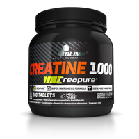 Olimp Creatine 1000 to wysokiej jakości monohydrat kreatyny w tabletkach. Suplement uzupełnia poziom kreatyny w tkankach oraz wpływa na wzrost stężenia fosfokreatyny, umożliwiając resyntezę ATP - energii. Olimp Creatine 1000 to prosty sposób na wzrost siły i wytrzymałości mięśniowej. Produkt działa anabolicznie, stymulując syntezę białek mięśniowych, oraz zmniejsza katabolizm.