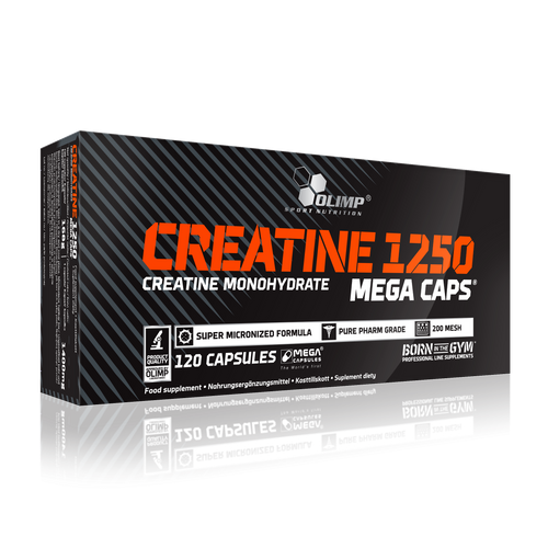 Olimp Creatine 1250 Mega Caps to wysokiej jakości preparat kreatynowy, opierający swój skład na mikronizowanej kreatynie. Suplement wspiera rozwój beztłuszczowej masy mięśniowej oraz pomaga redukować tkankę tłuszczową. Wraz z Olimp Creatine 1250 Mega Caps możesz wreszcie spełnić swoje marzenia o szczupłej, wyrzeźbionej sylwetce, w czasie krótszym, niż w normalnych warunkach!